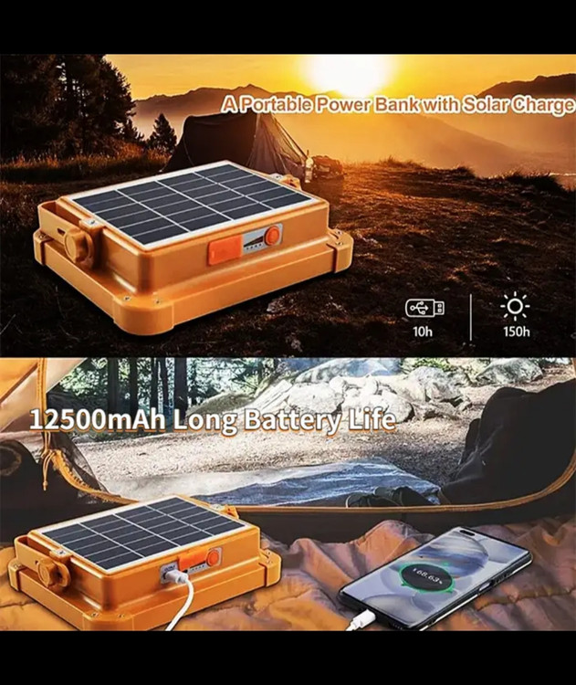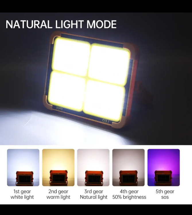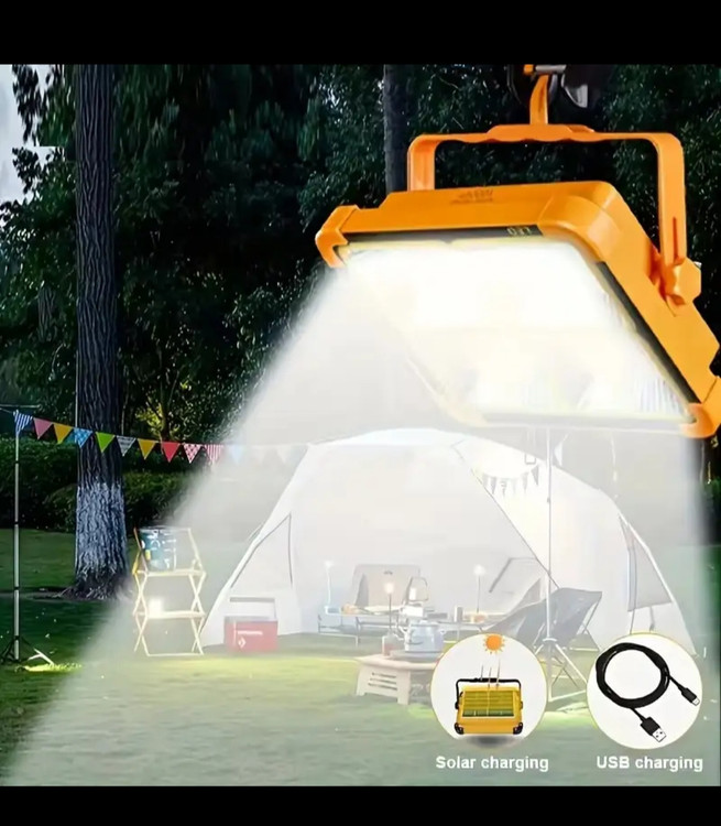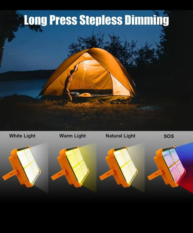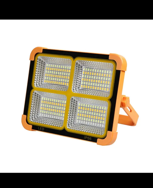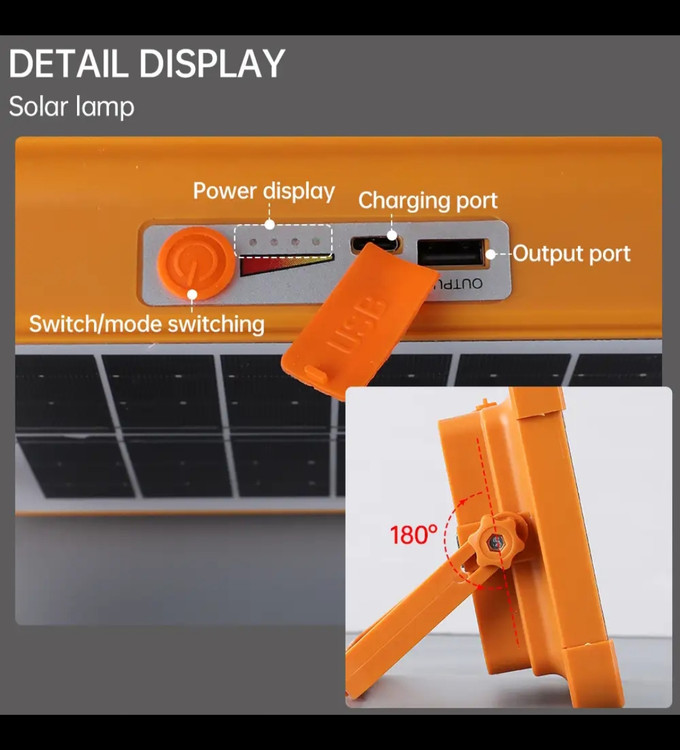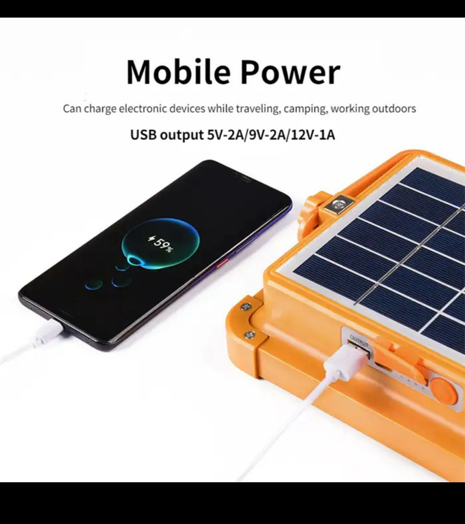 لامپ سولارLEDشارژی مدل 400w نوعی چراغ قابل حمل با پنل خورشیدی میباشد لامپ سولار LED شارژی یک راهکار مدرن اقتصادی برای روشنایی محیط های بیرونی و داخلی است این چراغ خورشیدی با استفاده از پنل خورشیدی با کیفیت انرژی خورشیدی را در طول روز جذب و در باتری داخلی ذخیره میکند تا در شب ها بدون نیاز به برق روشنایی قدرتمند و یکنواخت ارائه دهد به لطف طراحی ضد گردوغبار (IP65) این لامپ سولار در هر شرایط آب و هوایی از روزهای بارانی گرفته تا گرمای شدید به خوبی کار میکند این محصول برای حیاط باغ پارکینگ بالکن کمپینگ مسافرت و کوهنوردی و مواقع اضطراری انتخابی ایدهآل است این محصول با نور فوقالعاده در چهار حالت آفتابی مهتابی وحالت چشمک زن آبی و قرمز (پلیسی)در زمانهای اظطراری مورد استفاده قرار میگیرد این دستگاه هم با برق و هم با برق و هم با پنل خورشیدی